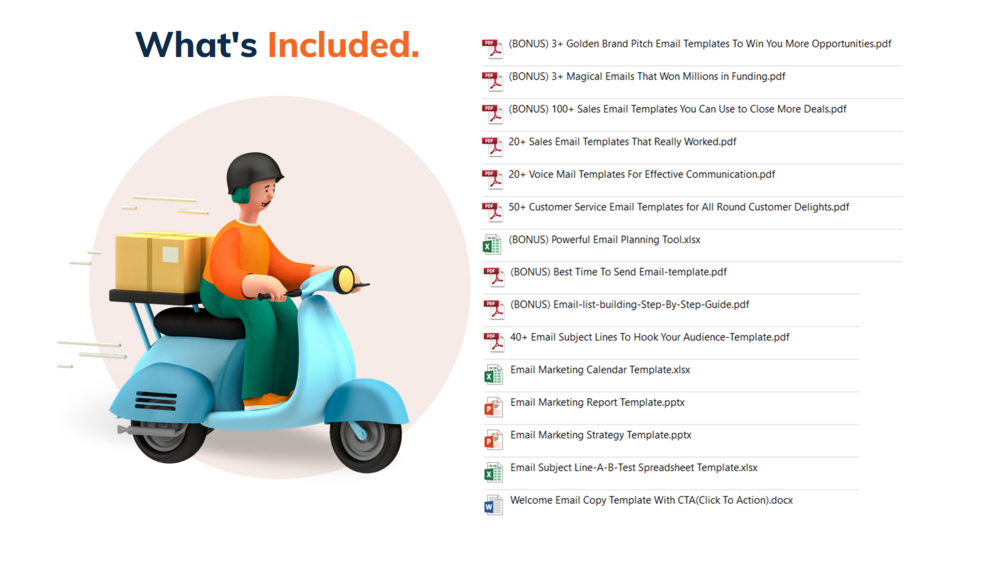 ⦁ (BONUS) 100+ Sales Email Templates You Can Use to Close More Deals. ⦁ (BONUS) Best Time To Send Email-template.